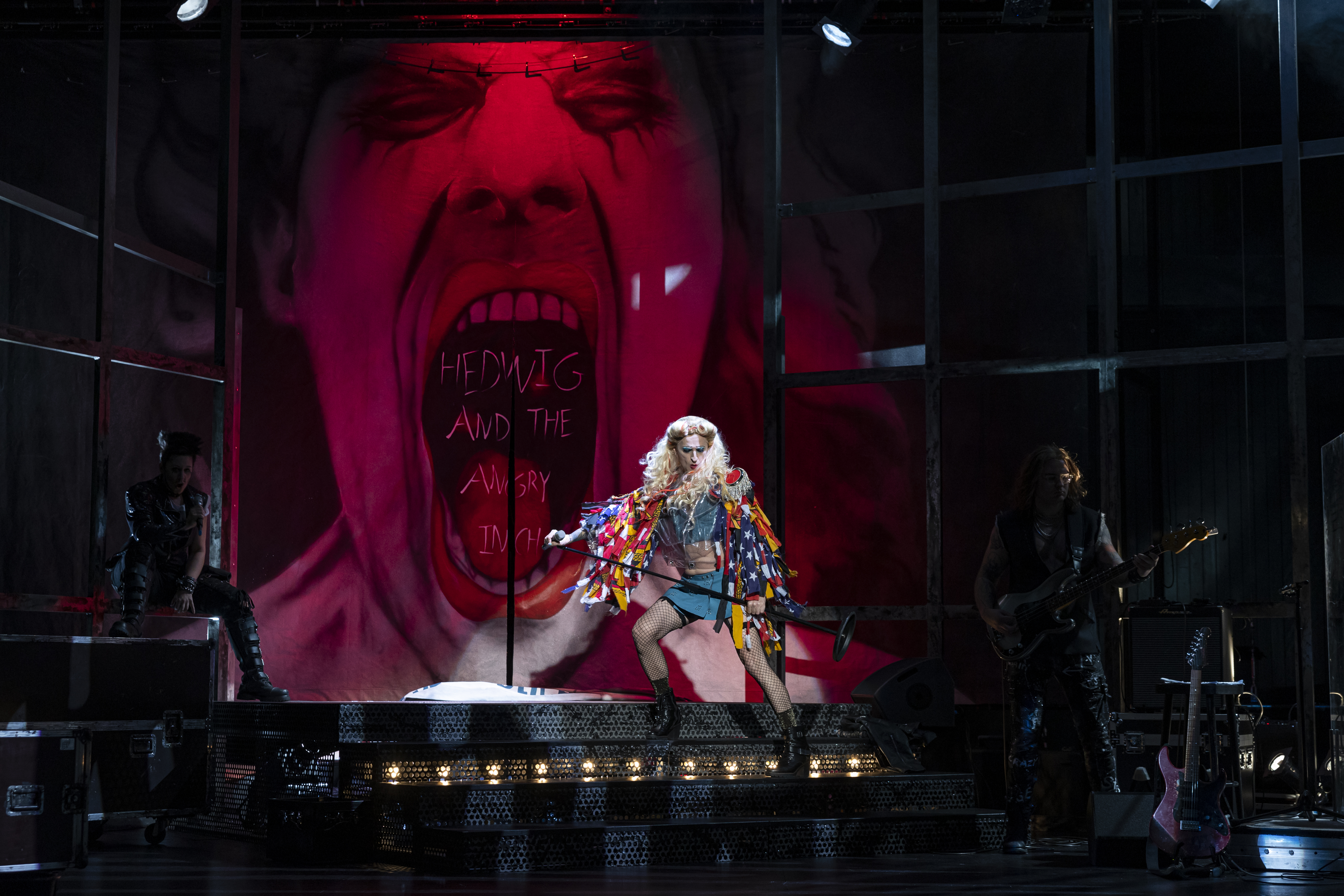 CM: Eigentlich nicht. Wir haben uns sehr nah ans deutsche Textbuch gehalten. Die DDR-Thematik resultiert aus der Stationierung von John Camerons Vater in Berlin. Bestimmt haben die antijüdischen Kommentare von Hedwig gegenüber Yitzhak aufgrund der deutschen Geschichte in der Übersetzung eine andere Wucht als im amerikanischen Original. Dafür bedeutet für den „amerikanischen“ Yitzhak das Stichwort „Immigration“ etwas anderes, da die Angst vor der Einwanderungsbehörde eine größere ist. Es sind kleinere Momente, die in Deutschland und Amerika unterschiedlich konnotiert sind. Bei einigen Sachen schluckt man hier bestimmt eher als darüber zu lachen. Aber das, glaube ich, ist auch dieser Figur geschuldet, die Mitchell erfunden hat. Hedwig ist natürlich eine sehr drastische, schrille, extrovertierte Figur und bedient sich eben auch eines extremen Humors.