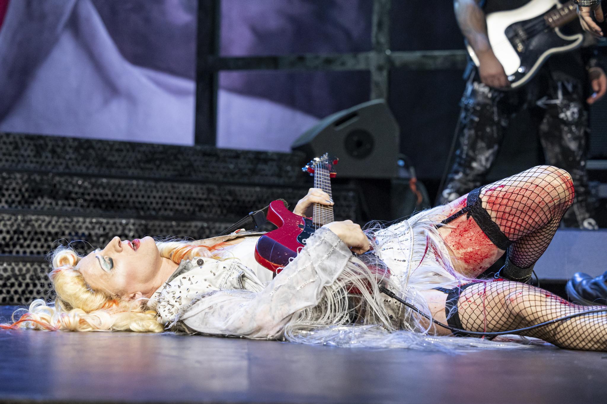 Foto: Auf der Bühne im Kleinen Haus des Musiktheater im Revier rockt Alex Melcher als Hedwig die Bühne.
