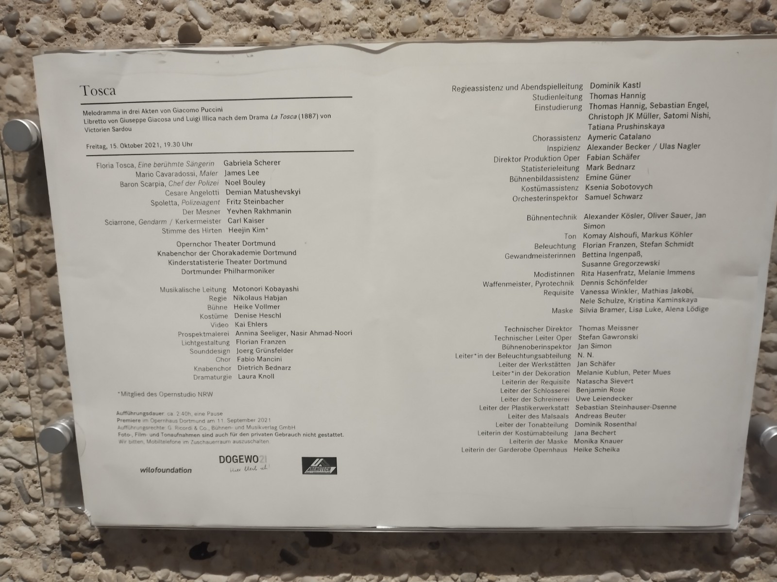 Am 15. Oktober durfte ich bei meinem ersten Einsatz als RuhrBühnen-Bloggerin im Opernhaus Dortmund (Theater Dortmund) bei einer Vorstellung von Puccinis Oper TOSCA zu Gast sein und eines vorneweg: Der Funke ist übergesprungen.
