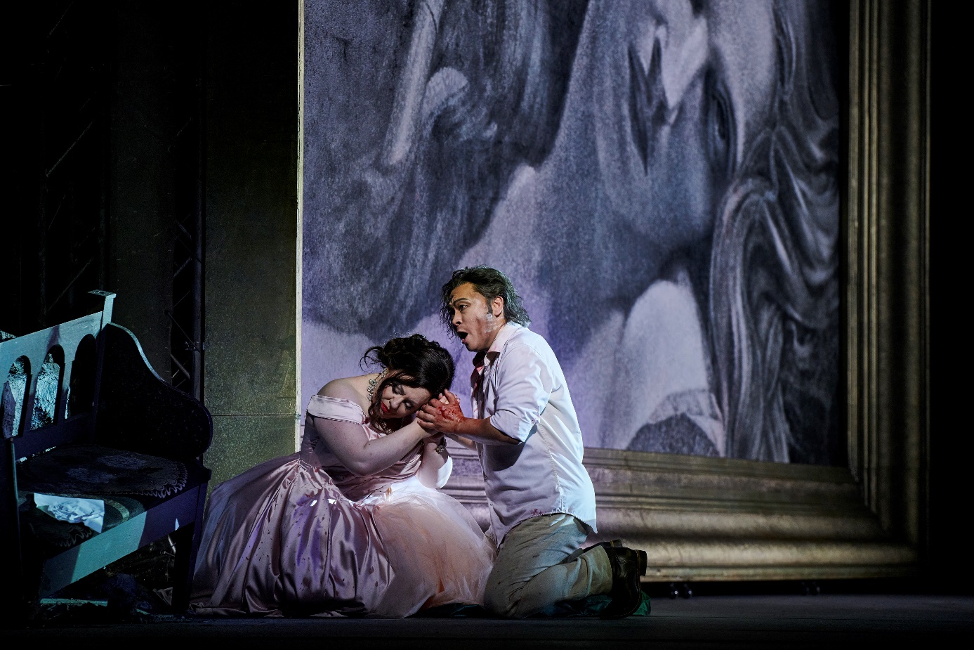 Trotz ihrer scheinbar ausweglosen Situation gibt Tosca nicht auf (Inga Kalna, Noel Bouley)